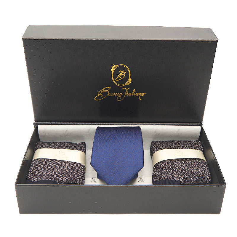 Questa cravatta nasce da un tessuto in seta italiana realizzato su disegno esclusivo Barocco Italiano: un logato blu profondo, discreto ma riconoscibile, pensato per chi pretende eleganza senza esibizionismi.