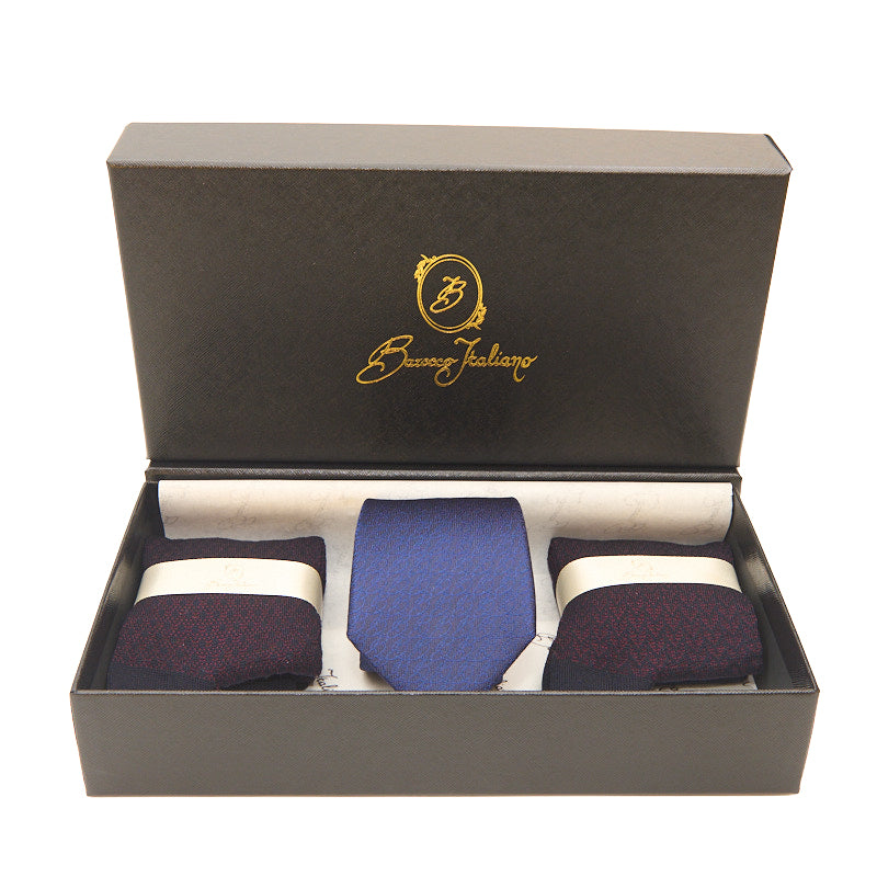 Box calza lunga cotone Filo di Scozia con polsino inglese e Cravatta in seta fatta a mano - ROSSO BAROLO