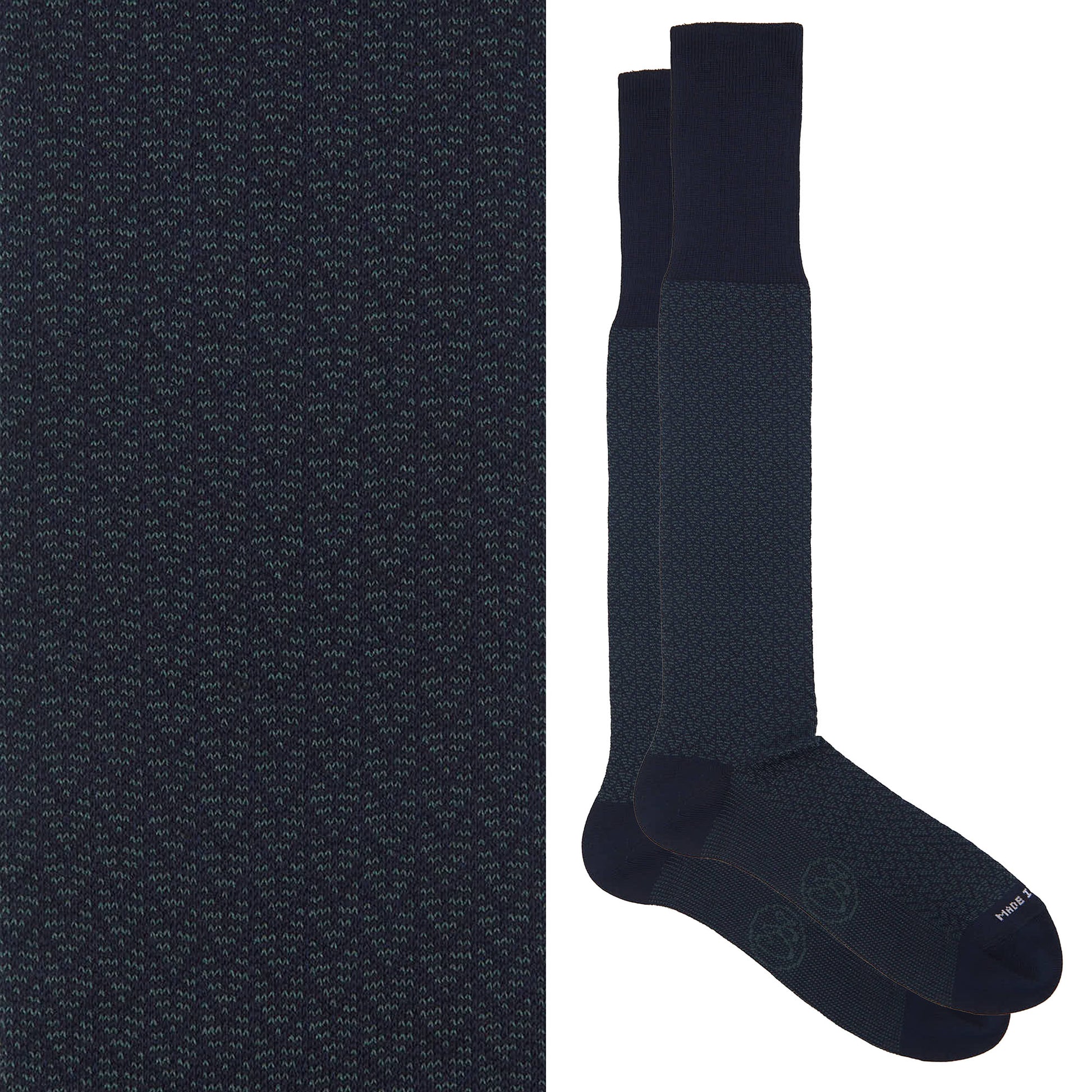 Calza lunga cotone Filo di Scozia con polsino inglese fondo blu Spigato - VERDE SCURO LARICE